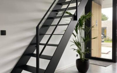 Moderne volledig stalen trap in zwart, de combinatie met de verlichting zorgt voor een uiterst modern effect.